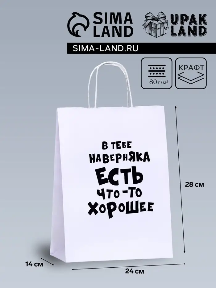 Подарок с долей здорового скепсиса! Крафт-пакет с надписью «В тебе наверняка есть что-то хорошее» — оригинальная упаковка для тех, кто ценит иронию в деталях. Двусторонний принт с ноткой сарказма превращает обычную упаковку в самостоятельное высказывание.