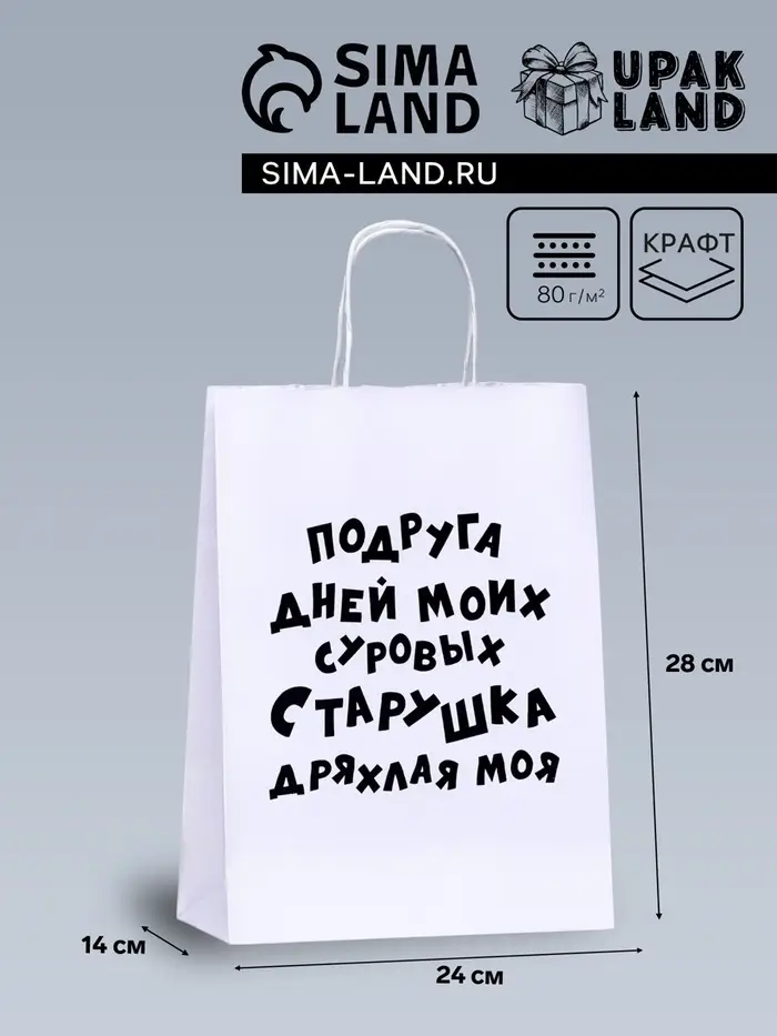 Пакет подарочный с приколами, крафт «Старушка», белый, 24×14×28 см, 1 шт.