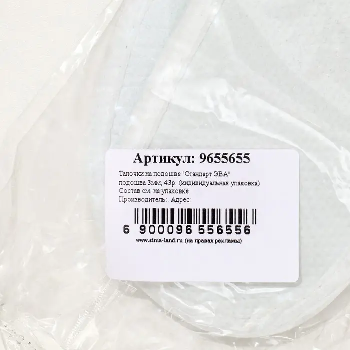 Тапочки на подошве "Стандарт Эва", подошва 3мм., 43 разм. (индивидуальная упаковка)