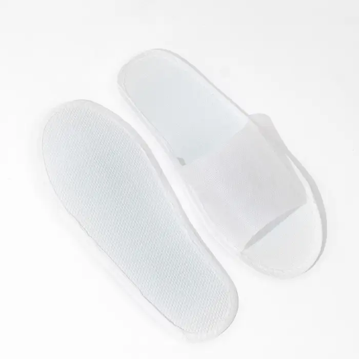 Одноразовые белые розовые с открытым мысом на нескользящей подошве имеют ровные швы и прошиты плотной ниткой. Союзка (верхний мыс) так же прошит с двух сторон, что значительно повышает прочность тапочка и обеспечивает длительное ношение без повреждений. Одноразовую обувь очень удобно взять с собой в дорогу или предложить гостям.