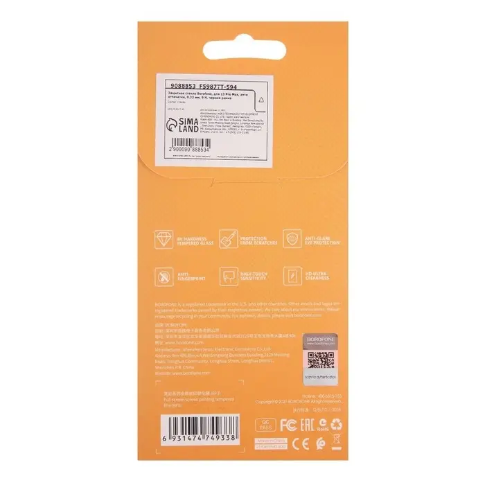 Защитное стекло Borofone, для 13 Pro Max, анти отпечатки, 0.33 мм, 9 H, черная рамка