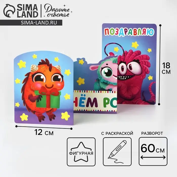 Поздравительная открытка с раскраской «Монстрики», 12×18 см