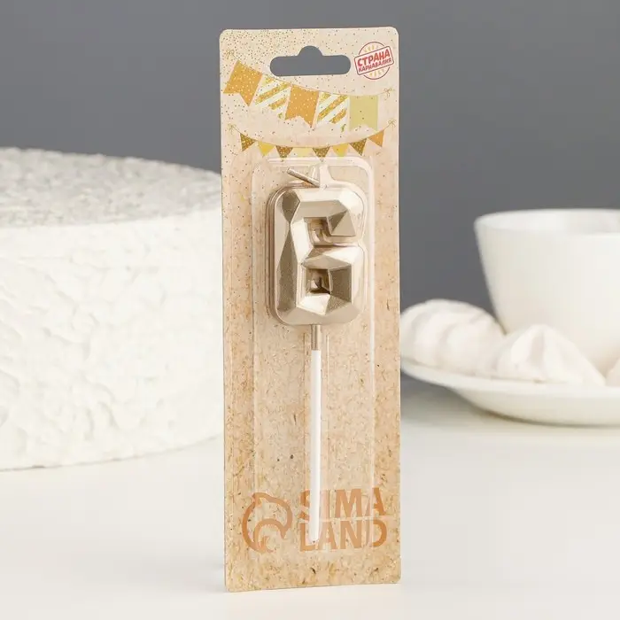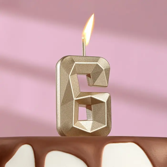 Свеча в торт на шпажке «Алмаз», цифра 6, шампань, 5×2.6 см