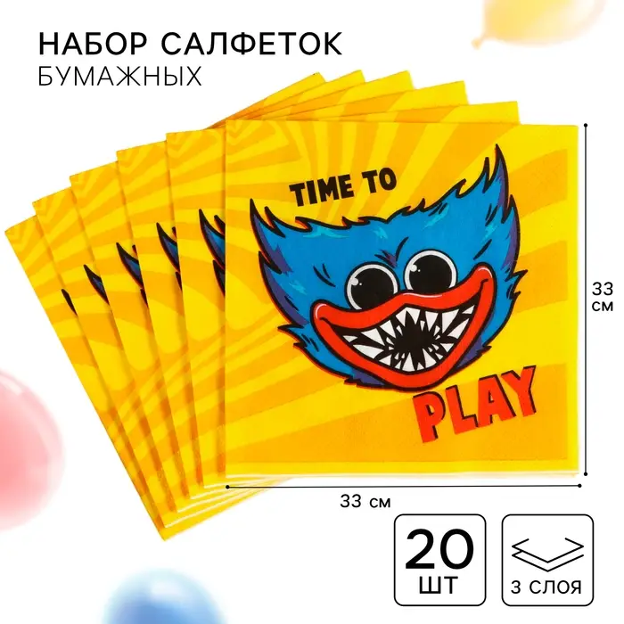Салфетки бумажные «Хагги Вагги», 33×33 см, 20 штук, 3-х слойные, Монстр