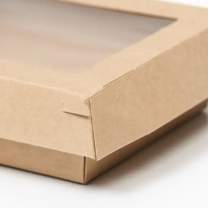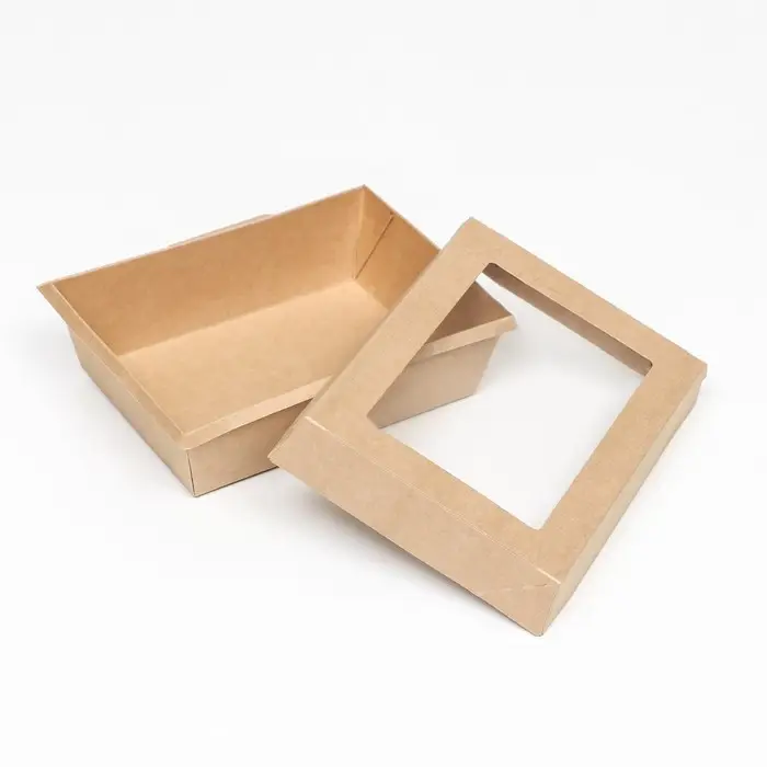 Контейнер с прозрачной крышкой, крафт, 0,4 л, 14,5 х 9,5 х 4, 5 см