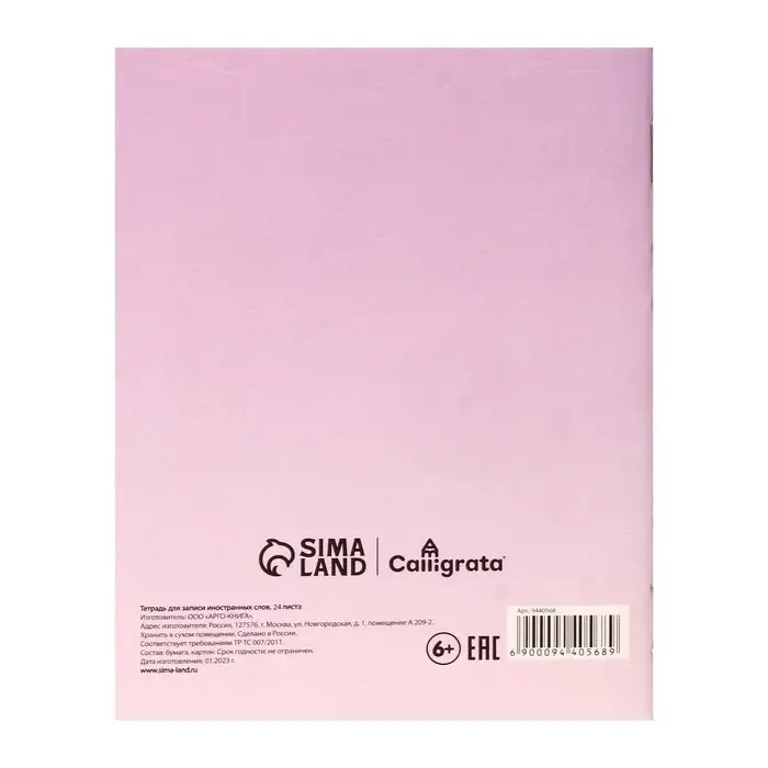 Тетрадь - словарик для записи английских слов, идеальный инструмент для изучения иностранных языков. Состоящий из 24 страниц, формата А6. Словарь представляет собой тетрадь с яркой обложкой, разлинованную на специальные столбики: слово, транскрипция, перевод. Тетрадь - словарь поможет быстрее выучить язык и запомнить иностранные слова. Он подходит как для изучения английского, так и немецкого языка. Благодаря удобной форме записи, вы сможете легко и быстро находить нужные слова и фразы. В качестве бонуса в словаре есть странички со справочными материалами.