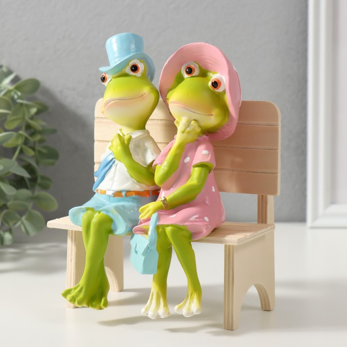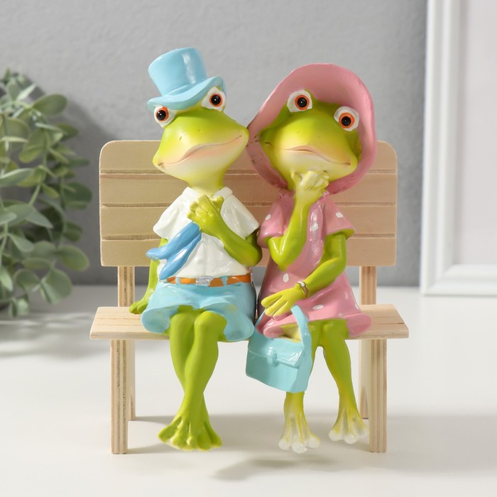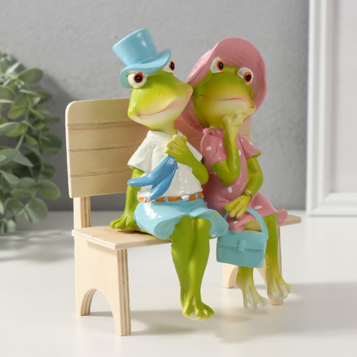 Сувенир полистоун "Лягушки на скамеечке - свидание" 16,8х8,5х13 см