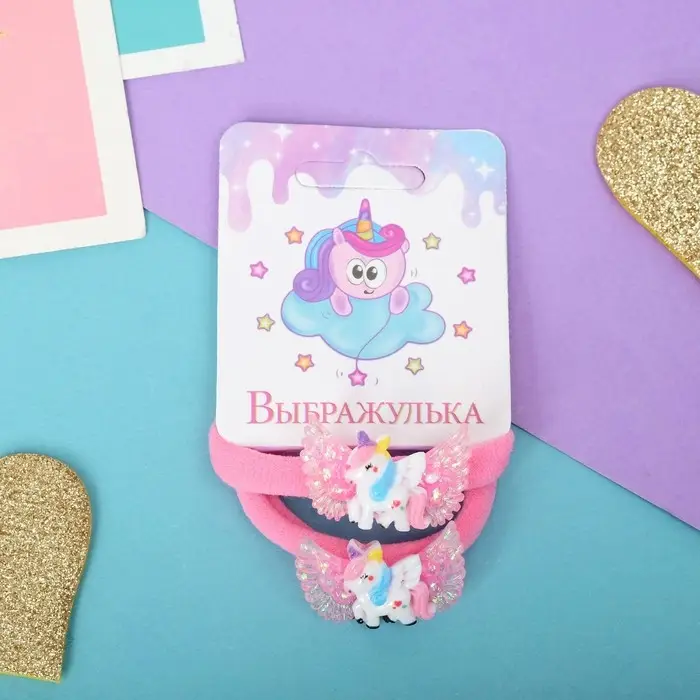Резинка для волос "Маленькая радость" (набор 2 шт) единорожек крылышки, 4 см, розовый