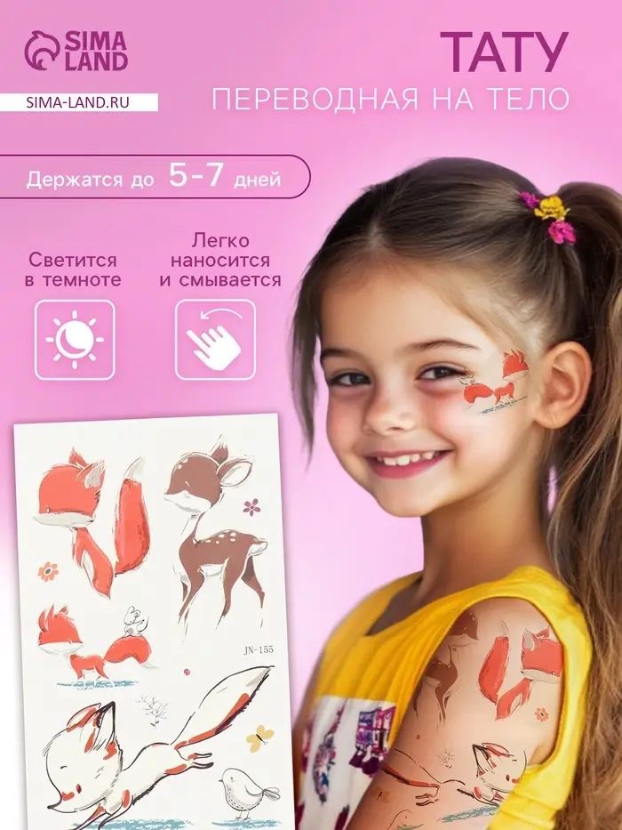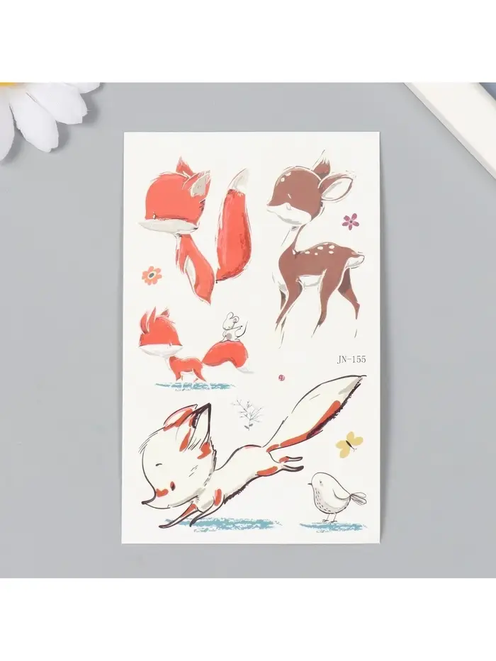 Переводные тату на тело светящиеся цветные «Оленёнок и лисята», 7.5×12 см