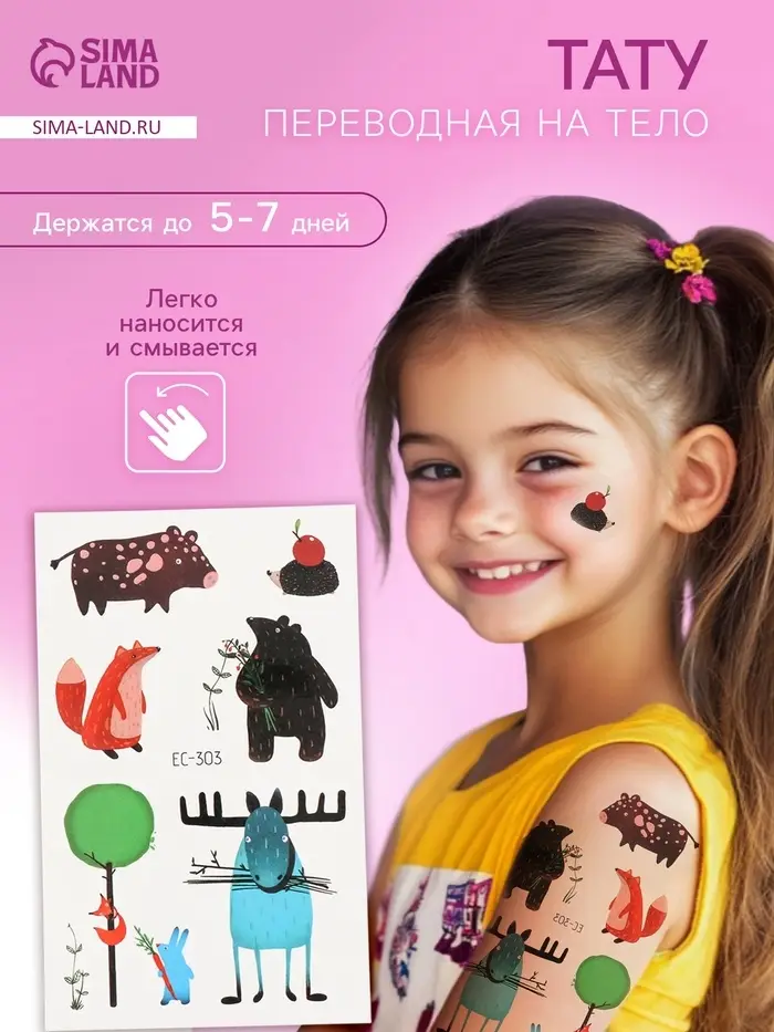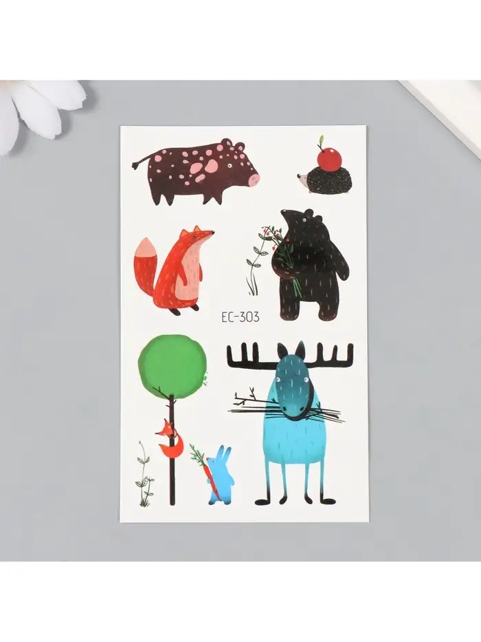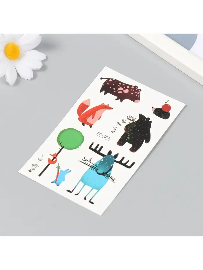 Переводные тату на тело цветные «Смешные звери», 7.5×12 см