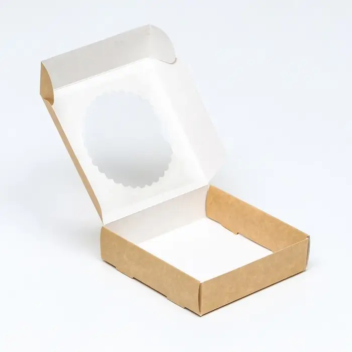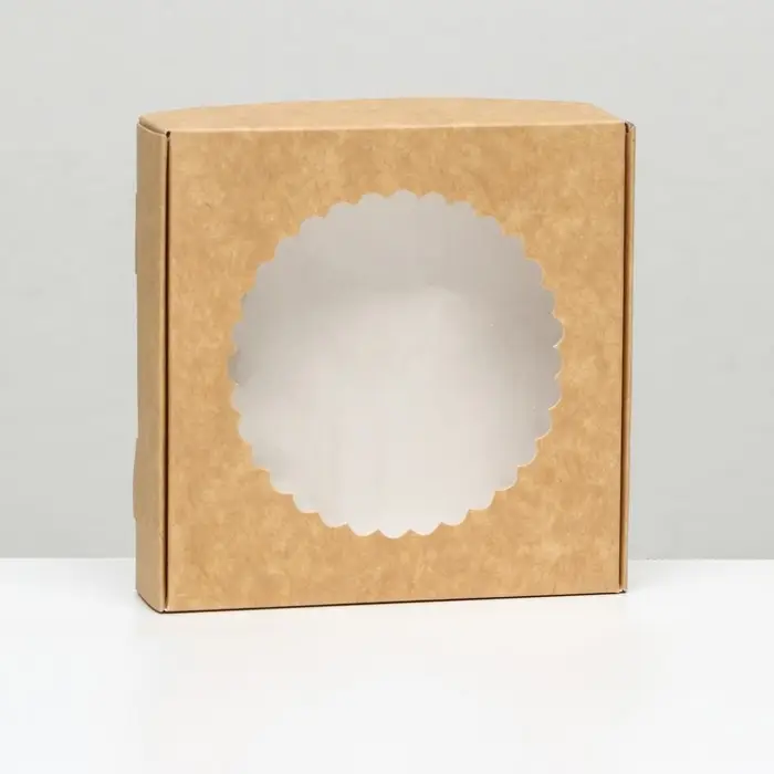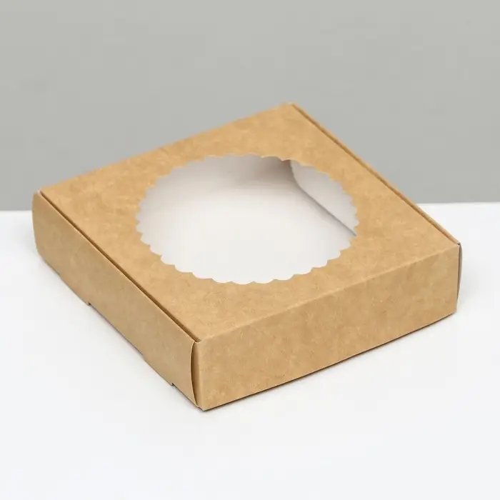 Коробка сборная, крафт, с окном, 11.5×11.5×3 см