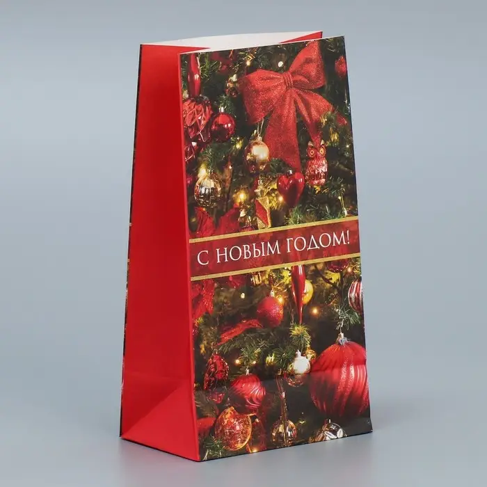 Пакет подарочный без ручек «С НОВЫМ ГОДОМ!», 10×19.5×7 см