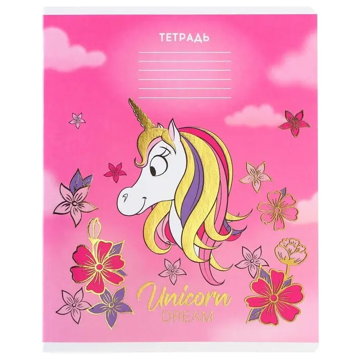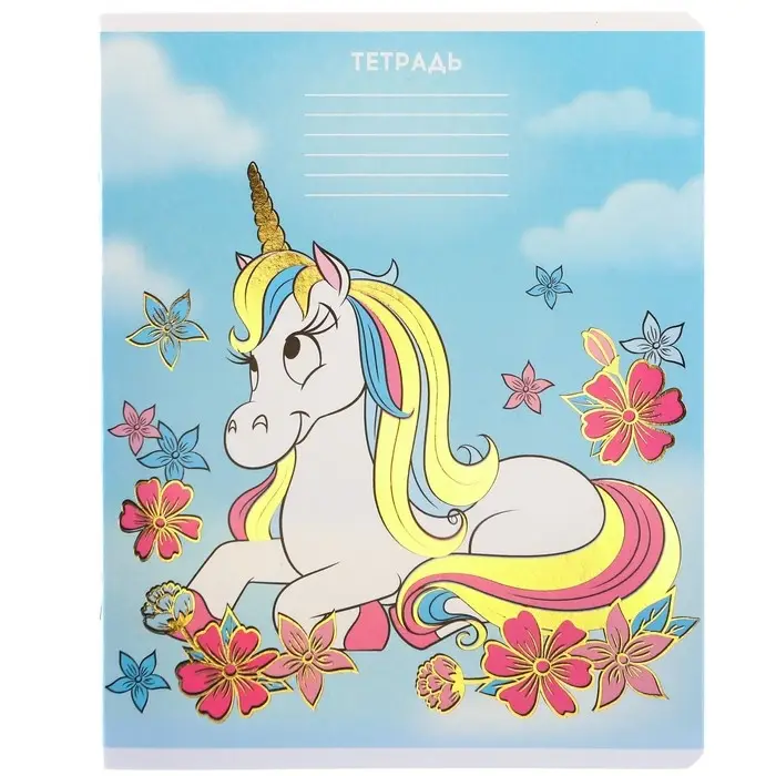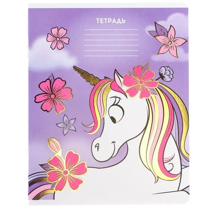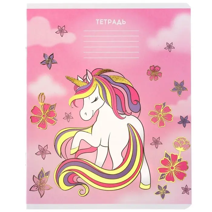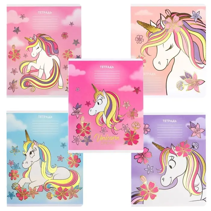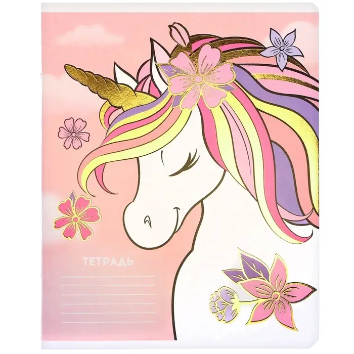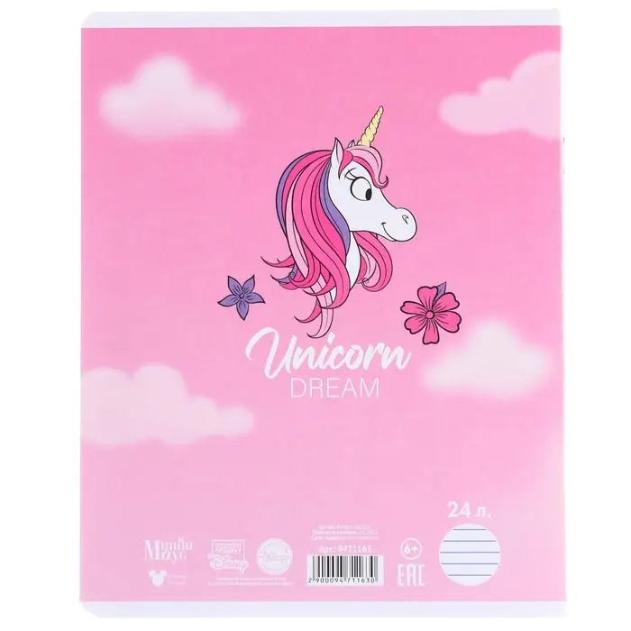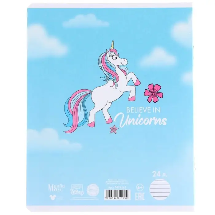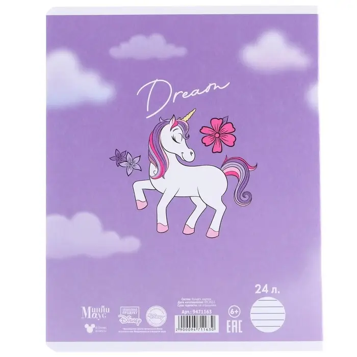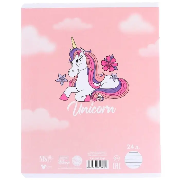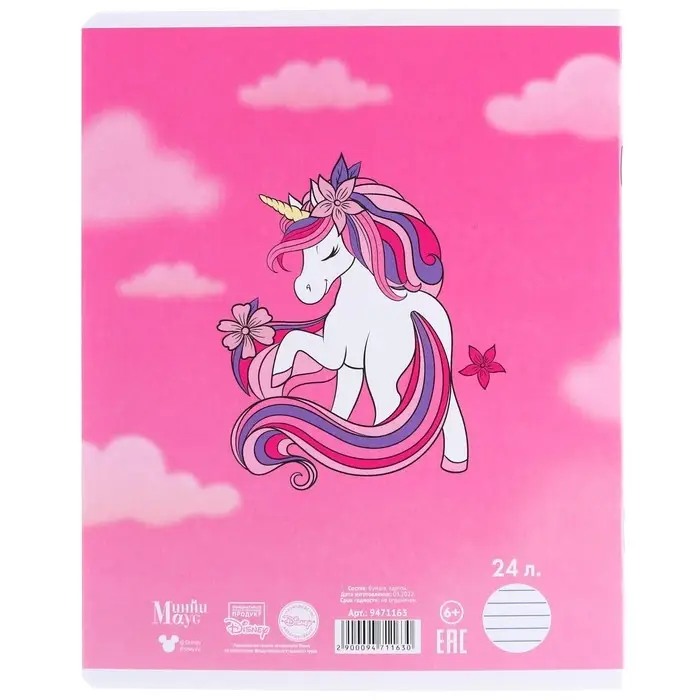 Тетрадь в линейку 24 листа, 5 видов МИКС, тиснение, обложка мелованный картон, «Минни Маус и единорог»