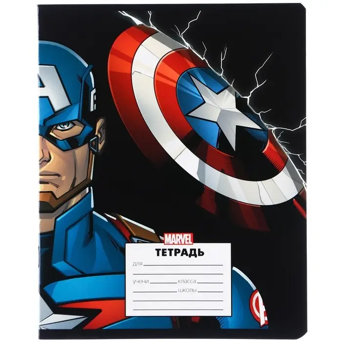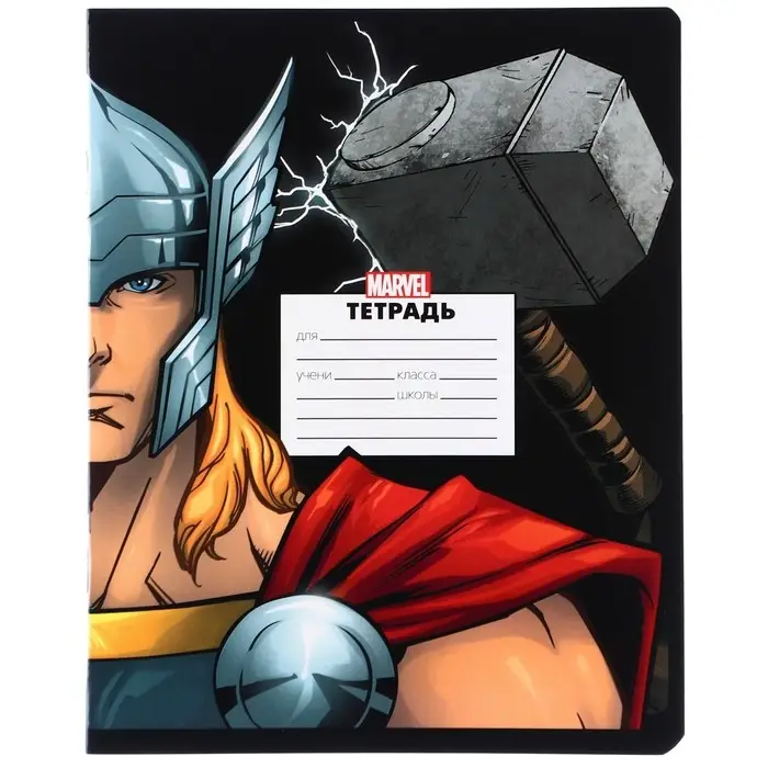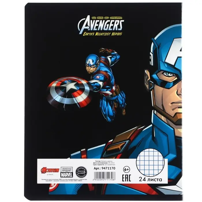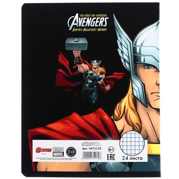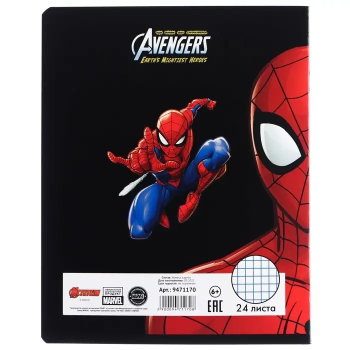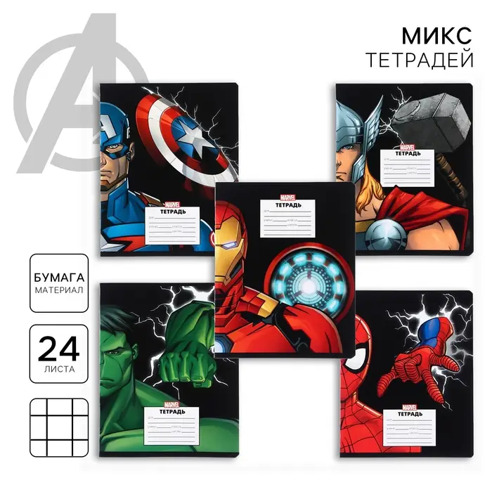 Тетрадь в клетку 24 листа, 5 видов МИКС, частичный уф-лак, обложка мелованный картон, «Мстители»