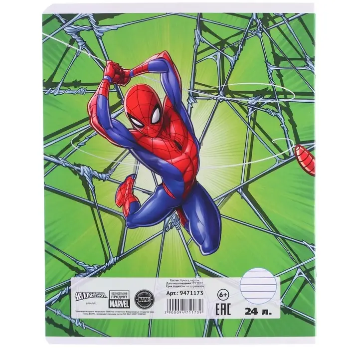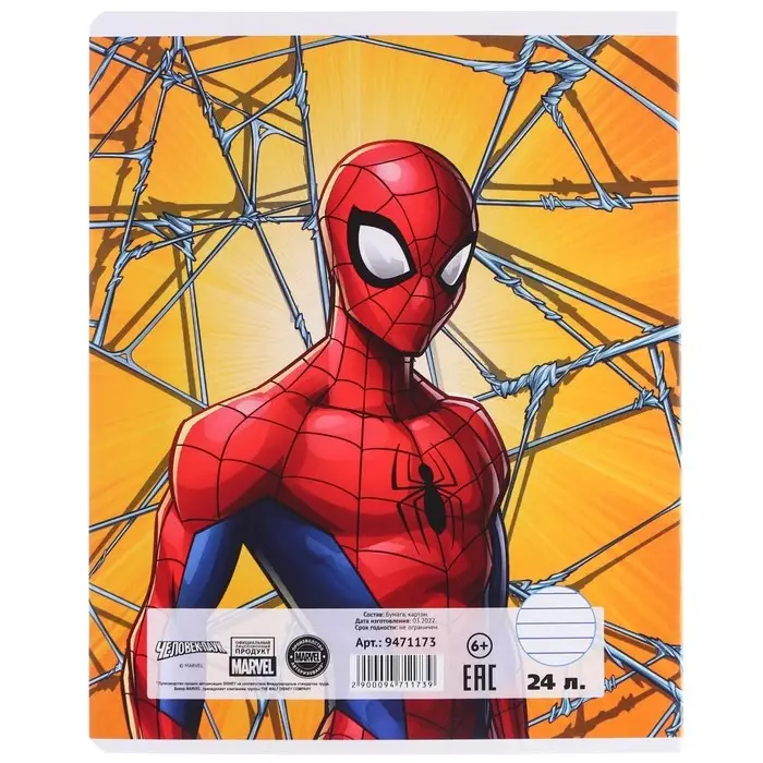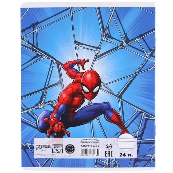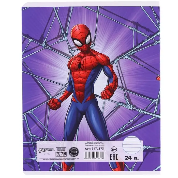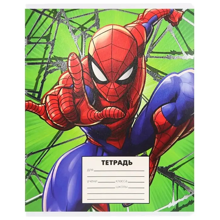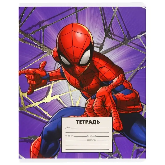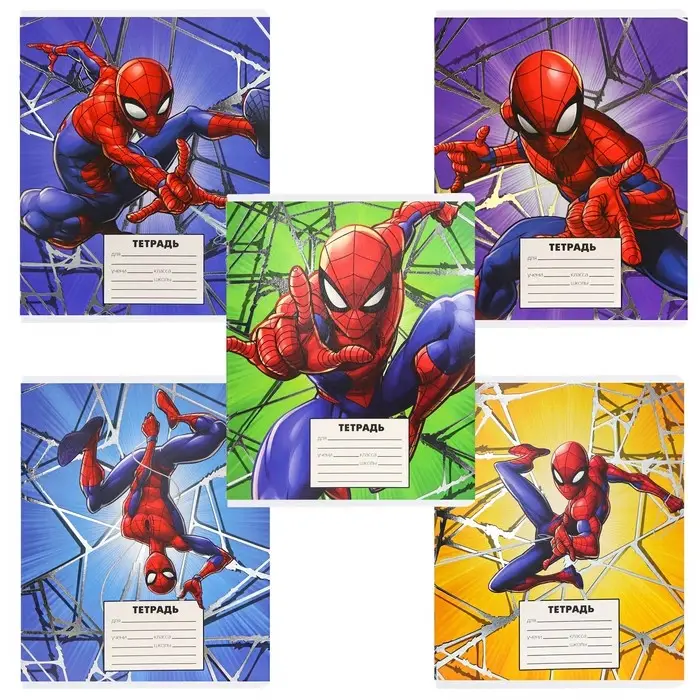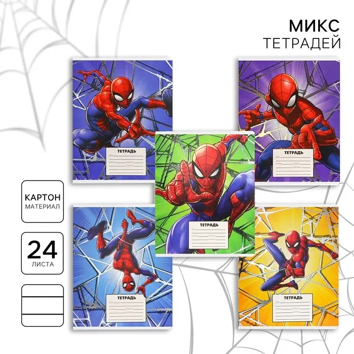 Тетрадь в линейку 24 листа, 5 видов МИКС, тиснение, обложка мелованный картон, «Человек-паук»