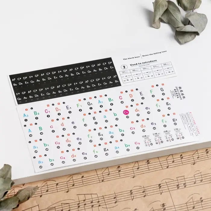 Наклейки на клавиши пианино, цветные