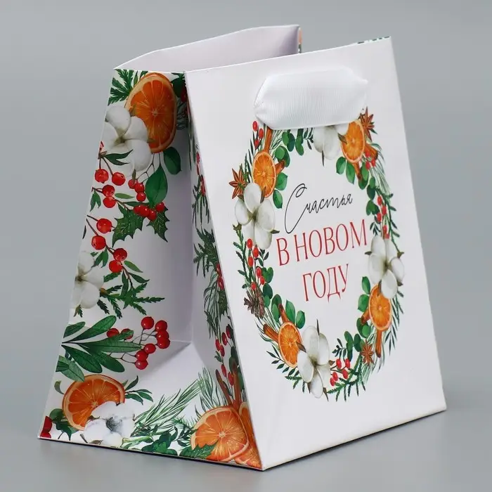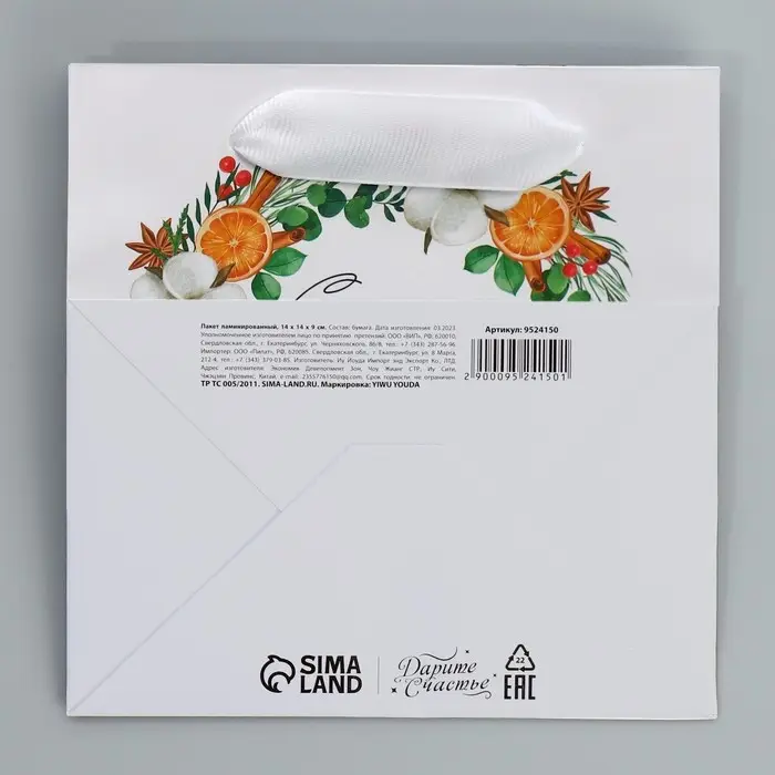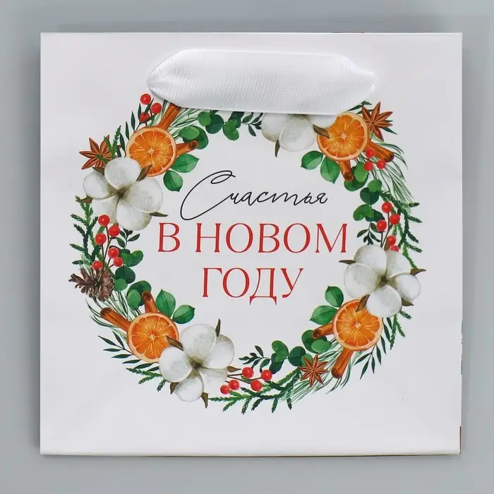 Пакет подарочный новогодний ламинированный квадратный «Счастье», 14 х 14 х 9 см