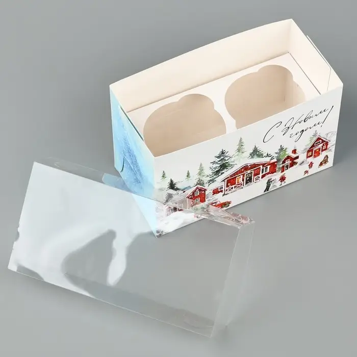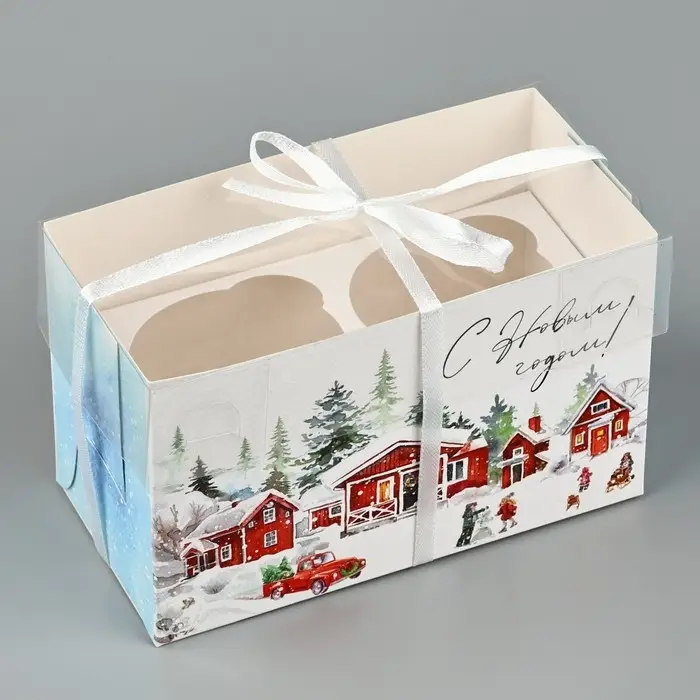Коробка для капкейка «С Новым годом», зимний отдых, 16 х 8 х 10 см