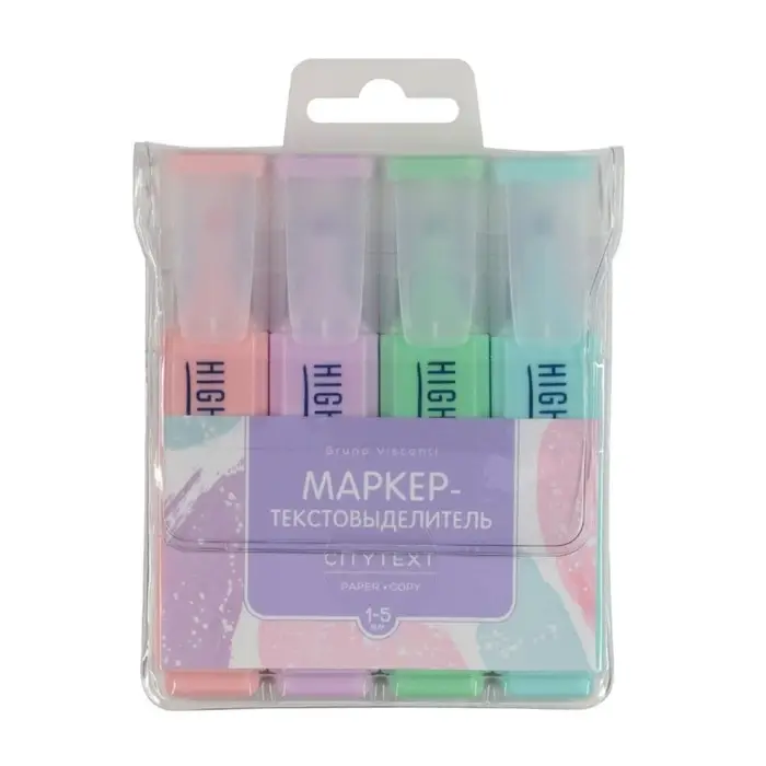 Набор маркеров-текстовыделителей 4 цвета, 1.0-5.0 мм, BrunoVisconti CityText, в ПВХ кармане