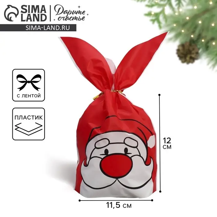 Мешок подарочный с ушками «Дедушка Мороз», 12 х 11.5 см