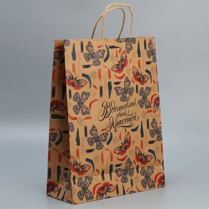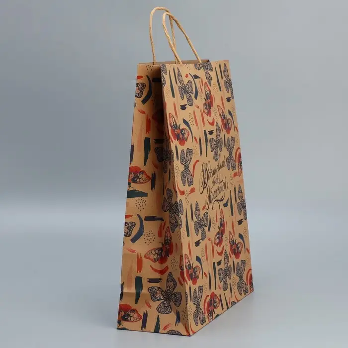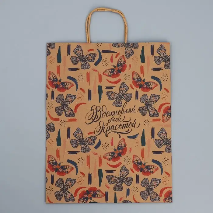 Пакет подарочный крафтовый, упаковка, «Вдохновляй», L 31 х 40 х 11.5 см