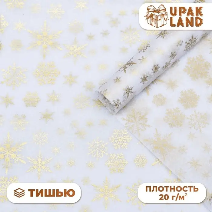 Бумага упаковочная тишью, новогодняя упаковка "Снежинки",50 х 66 см.