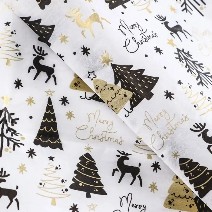 Бумага упаковочная тишью, новогодняя упаковка «Оленята»,50×65 см