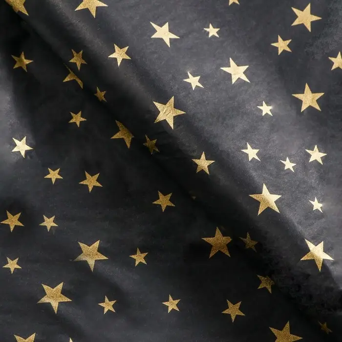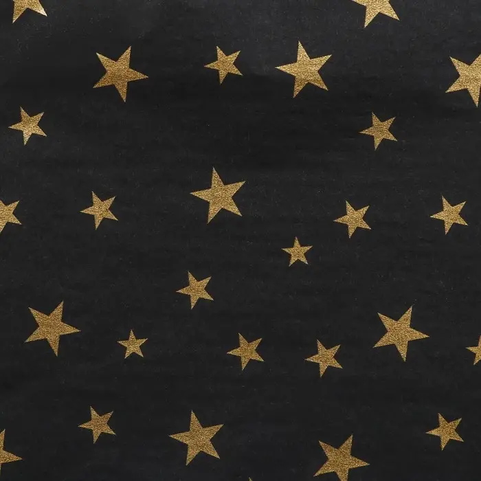 Бумага упаковочная тишью, новогодняя упаковка "Звезды на черном",50 х 66 см.
