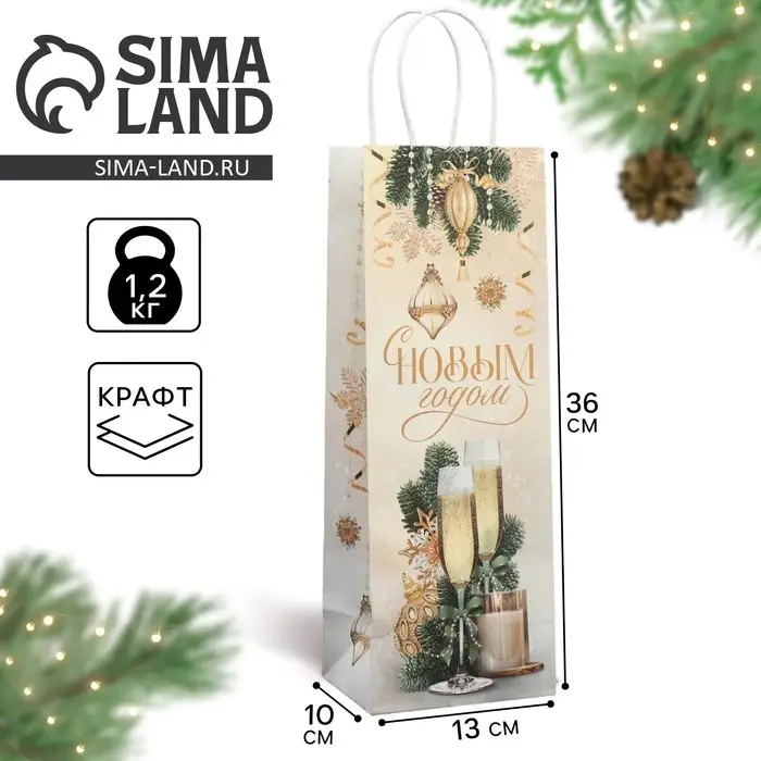Пакет под бутылку «Шампанское», 13 x 36 x 10 см