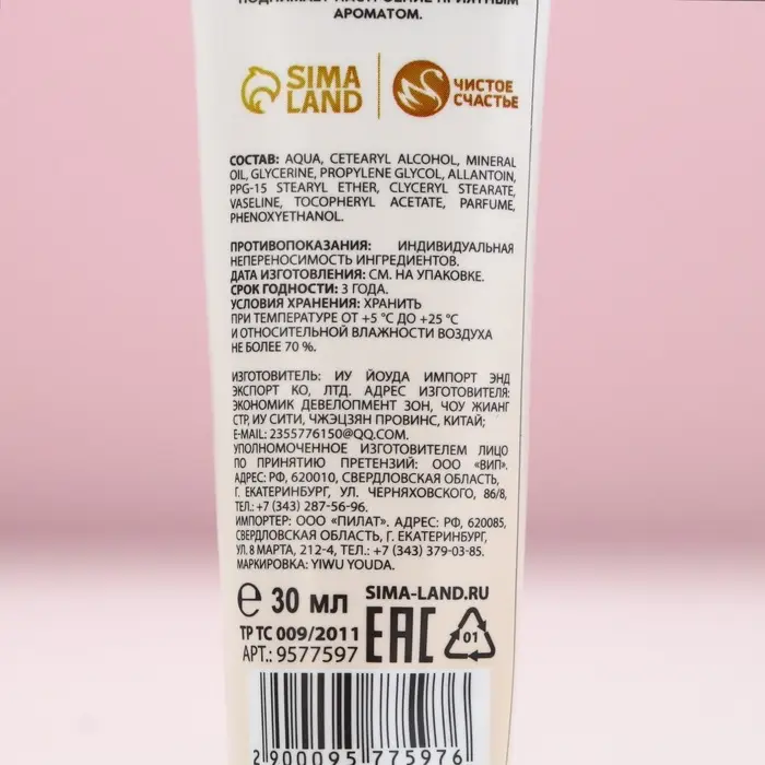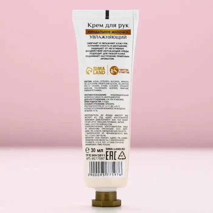 Крем для рук, 30 мл, аромат миндального молочка, Чистое счастье