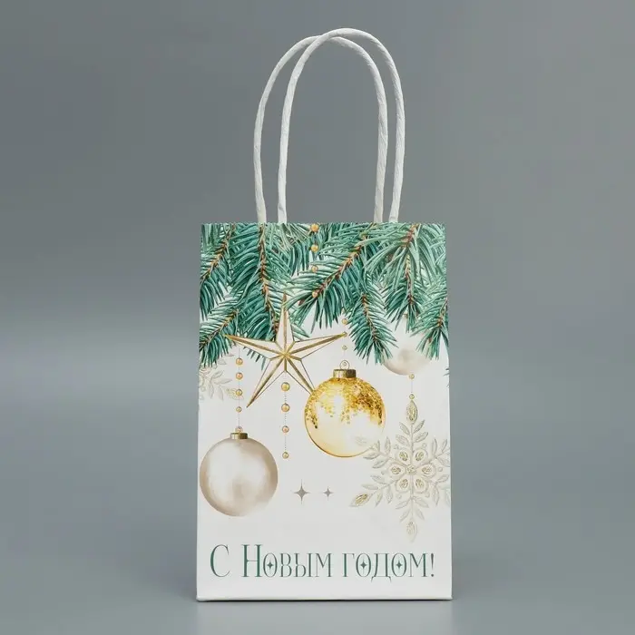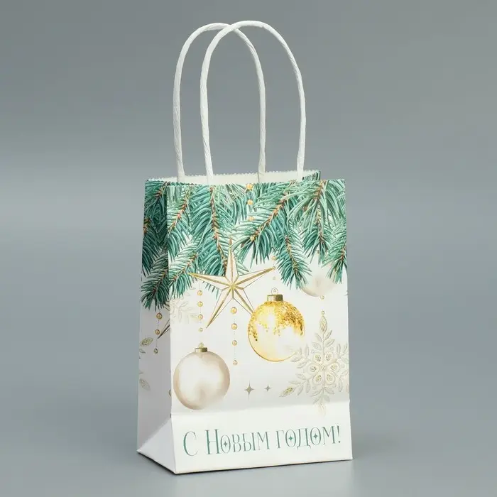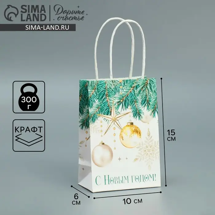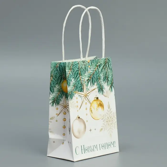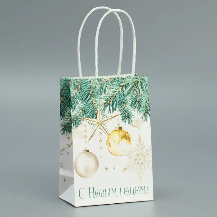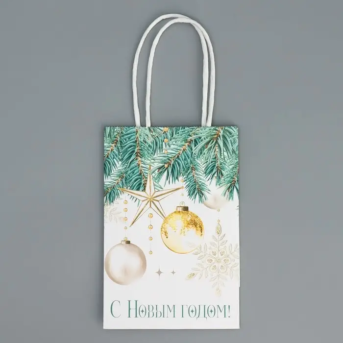 Пакет подарочный новогодний крафтовый «Роскошь Нового года», 15 х 10 х 6 см