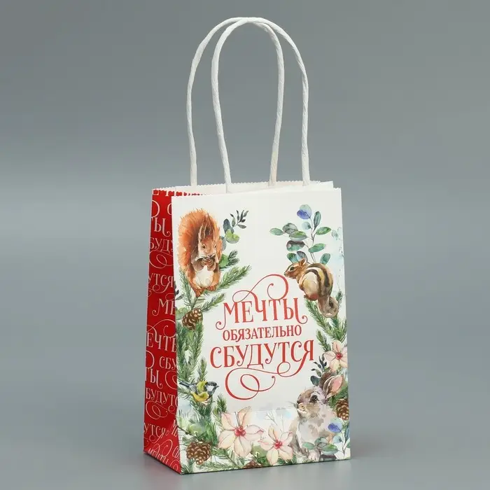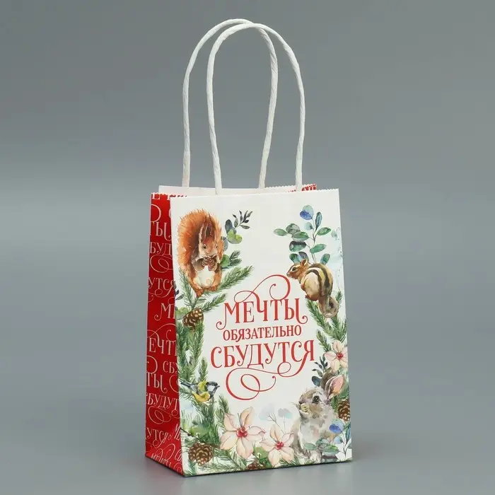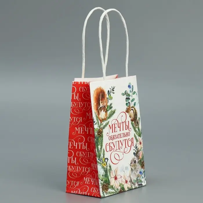 Пакет подарочный новогодний крафтовый «Мечты сбудутся», 15 х 10 х 6 см