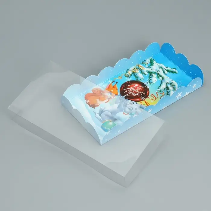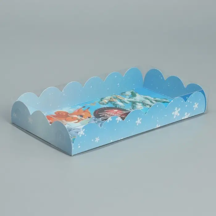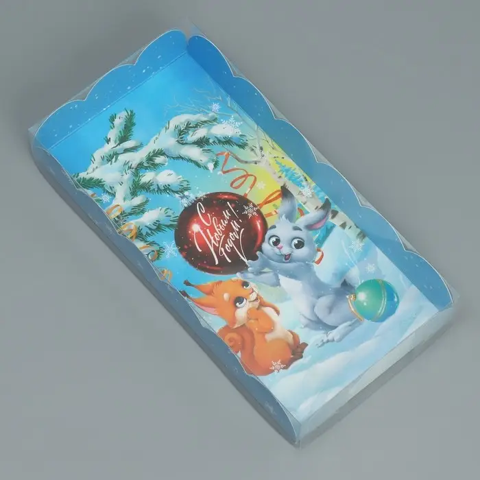 Коробка для кондитерских изделий с пластиковой крышкой «Зайка и белочка», 10.5 х 21 х 3 см