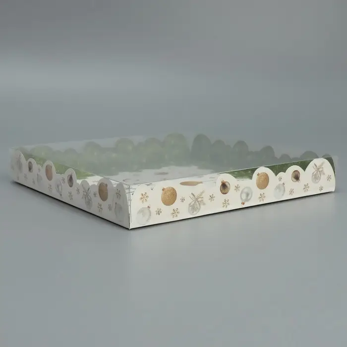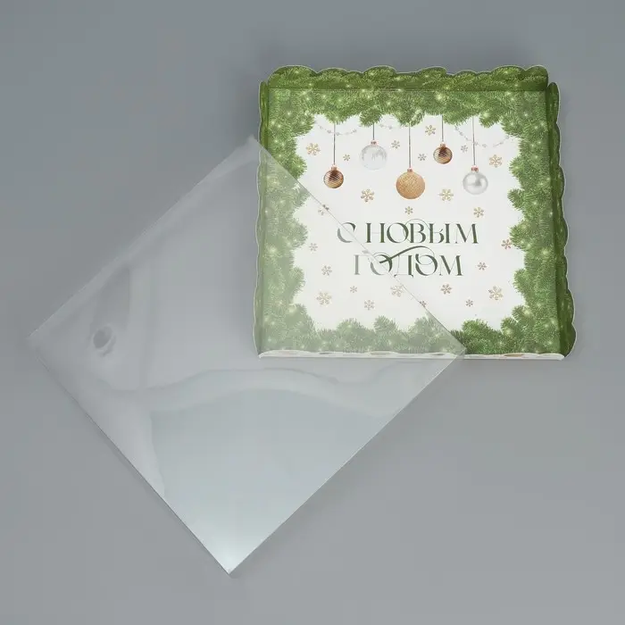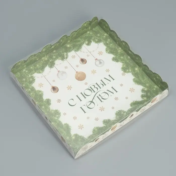 Коробка для кондитерских изделий с пластиковой крышкой «С Новым годом», 21 х 21 х 3 см