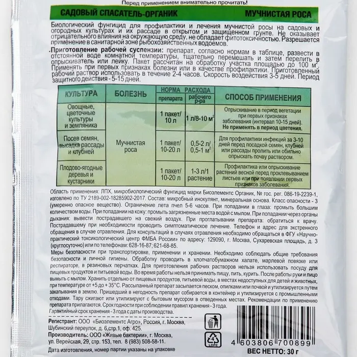Биологический фунгицид для профилактики и лечения мучнистой росы на садовых и огородных культурах и их рассаде в открытом и защищенном грунте.