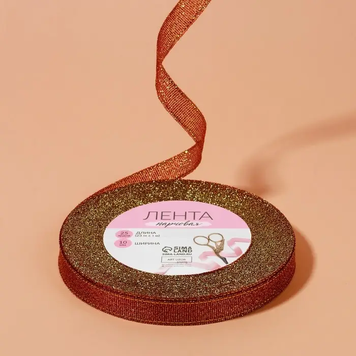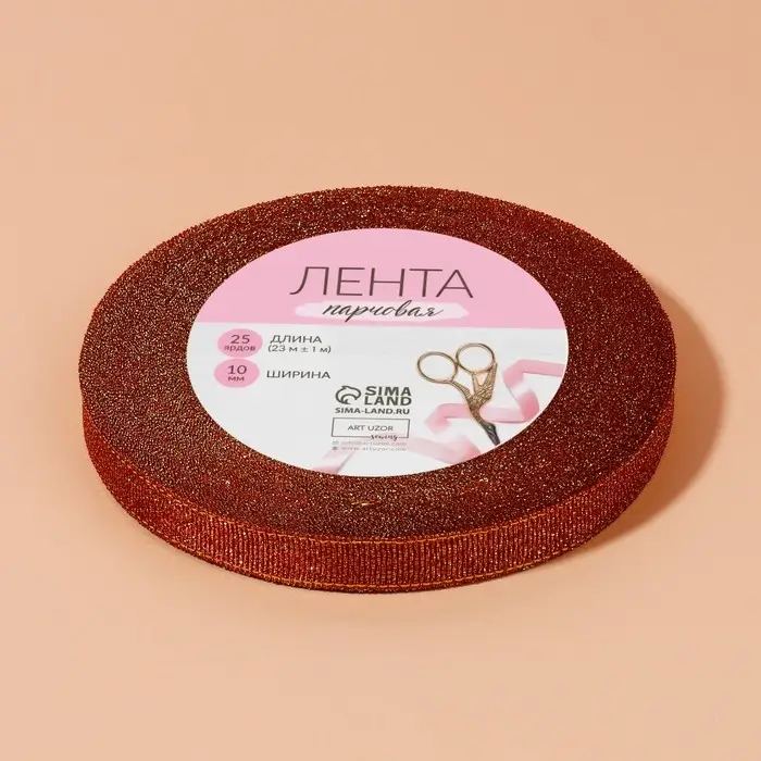 Лента парчовая, 10 мм, 23 ± 1 м, цвет бордовый №034
