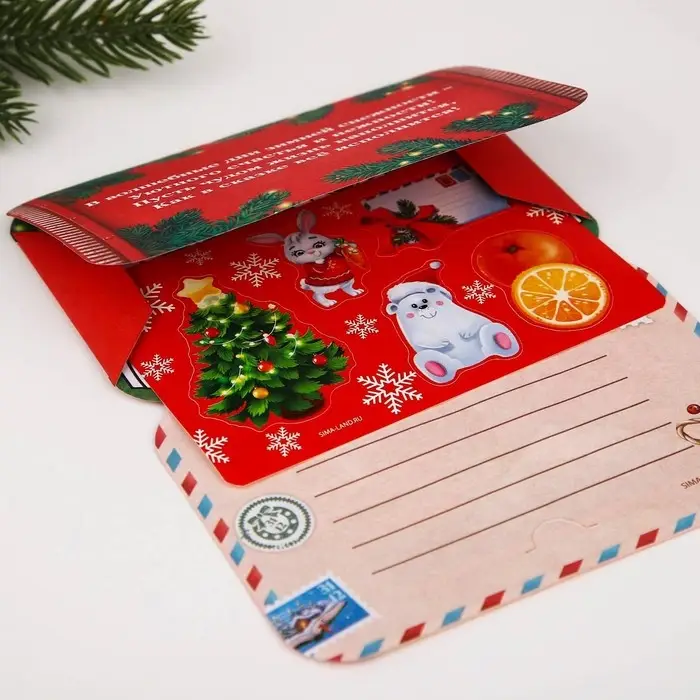 Письмо Деду Морозу открытка с наклейками «Новогодняя почта»