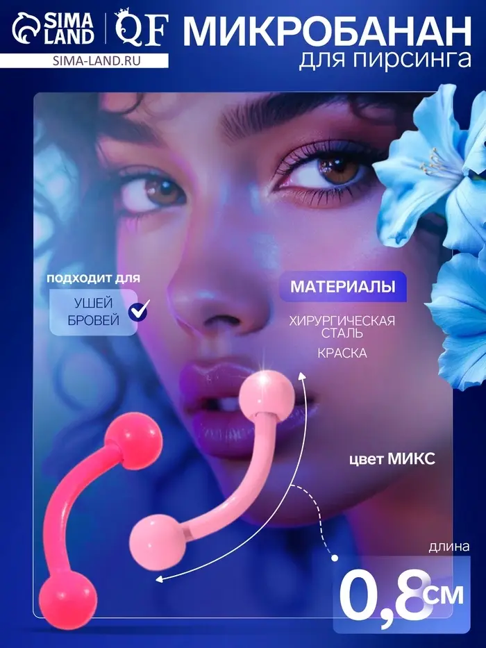 Пирсинг в бровь «Шарики» дуо, L=0.8 см, МИКС (фасовка 20 шт.)