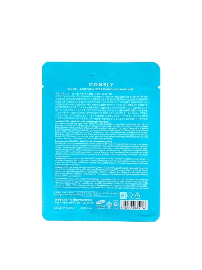 Маска тканевая для лица Consly «После вечеринки», 23 мл