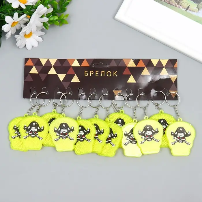 Брелок пластик светоотражающий катафот "Череп пирата" 5х5,5 см