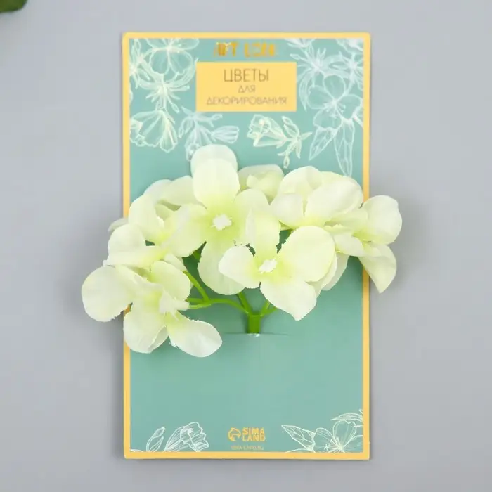 Цветы для декорирования "Гортензия" бело-зелёные 10х10 см