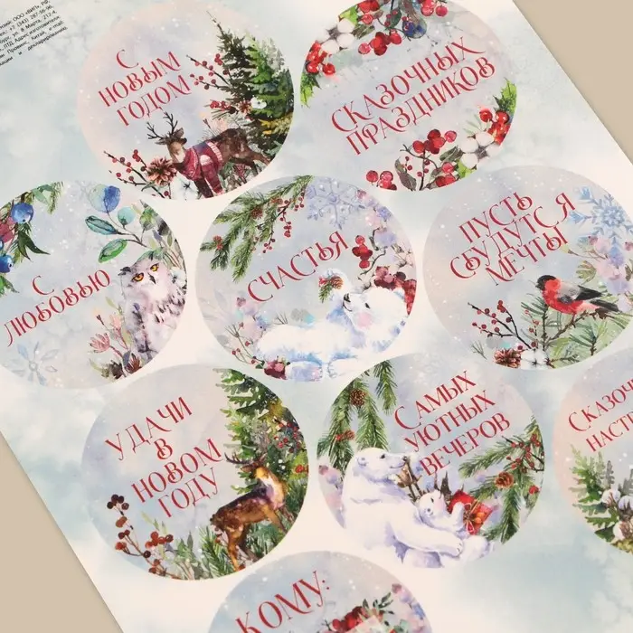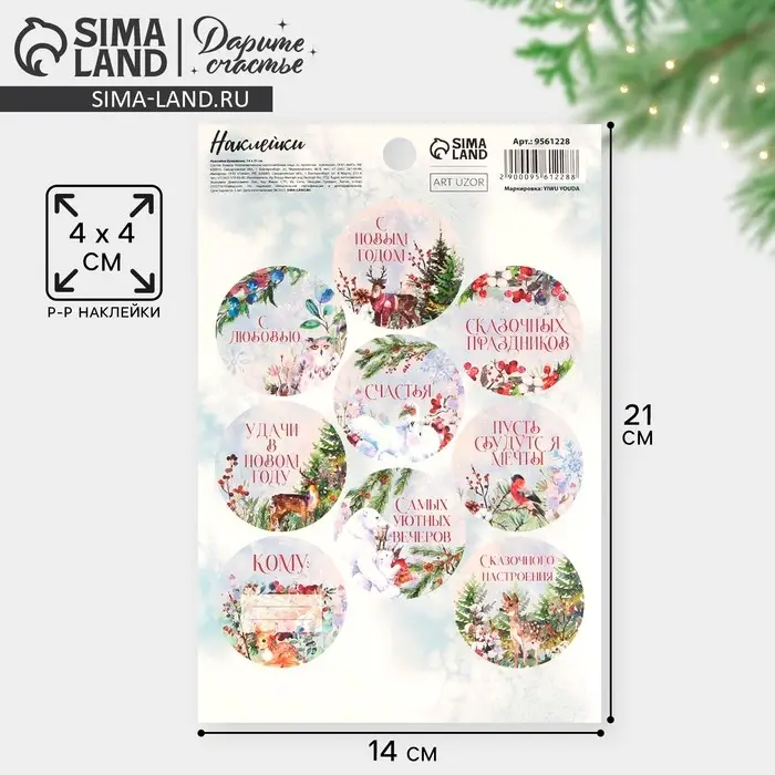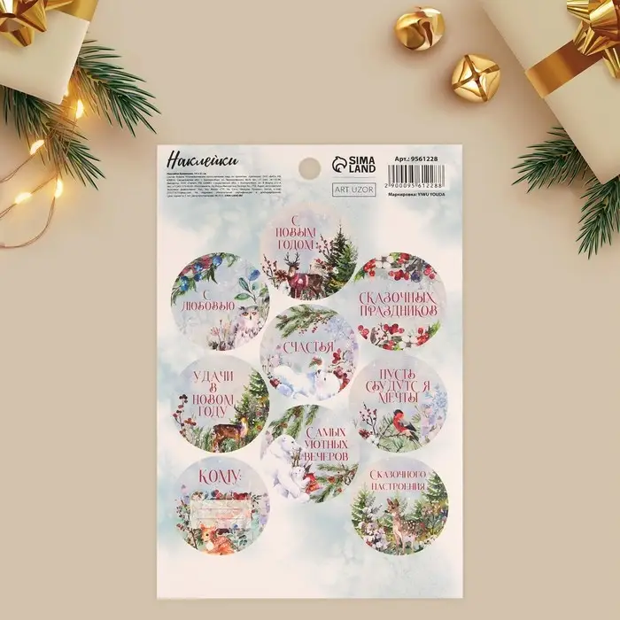 Наклейки новогодние бумажные на подарки «Сказочный праздник», 14 х 21 см