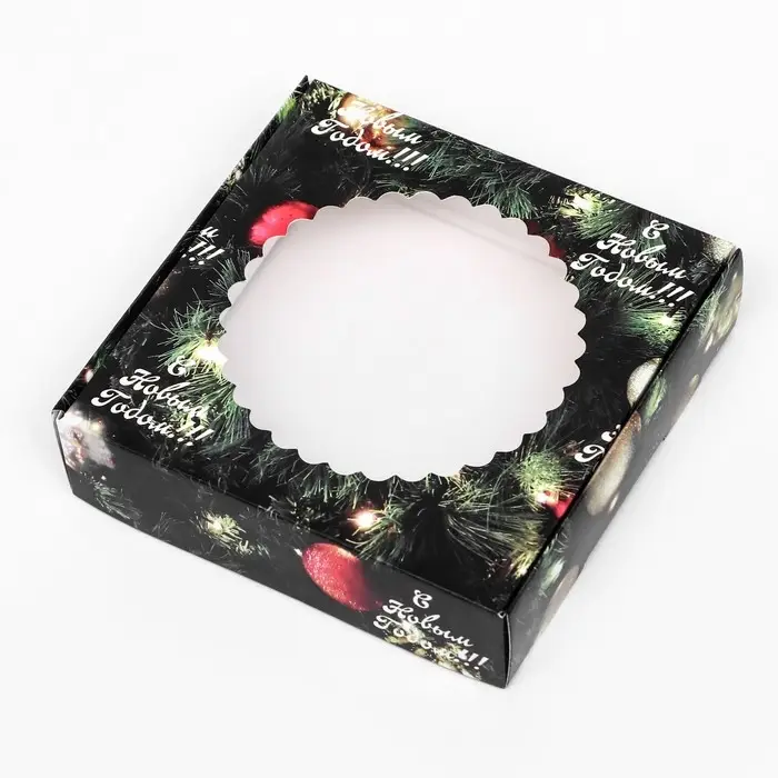 Подарочная коробка сборная с окном «Счастливого Рождества», 11.5×11.5×3 см
