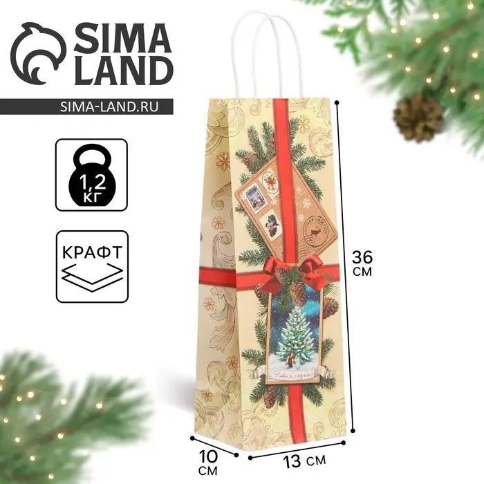 Пакет под бутылку «Почта», 13 x 36 x 10 см