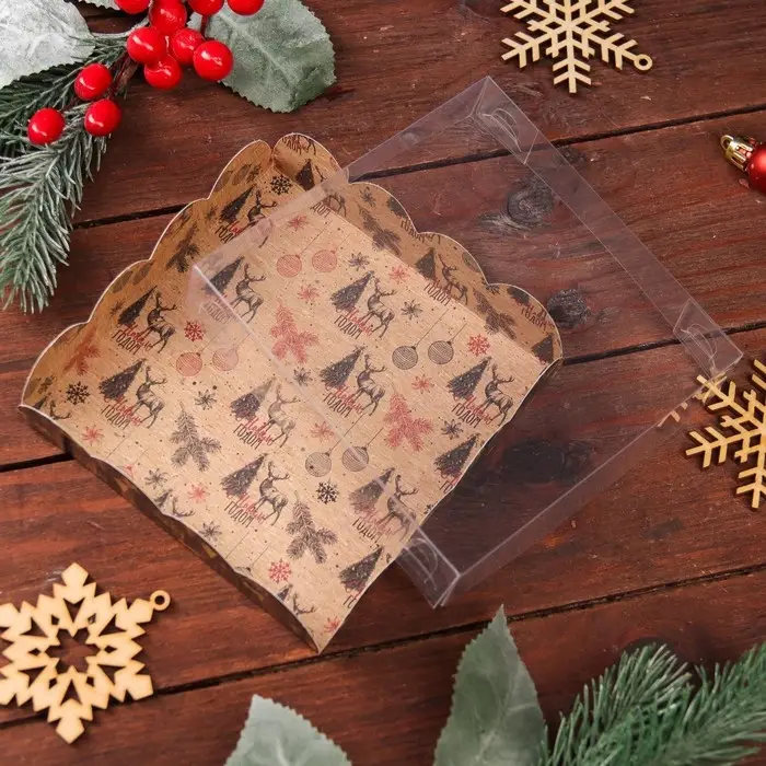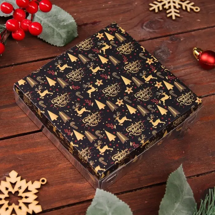 Коробка для печенья, кондитерская новогодняя упаковка, «Рождественская ночь», 12×12×3 см