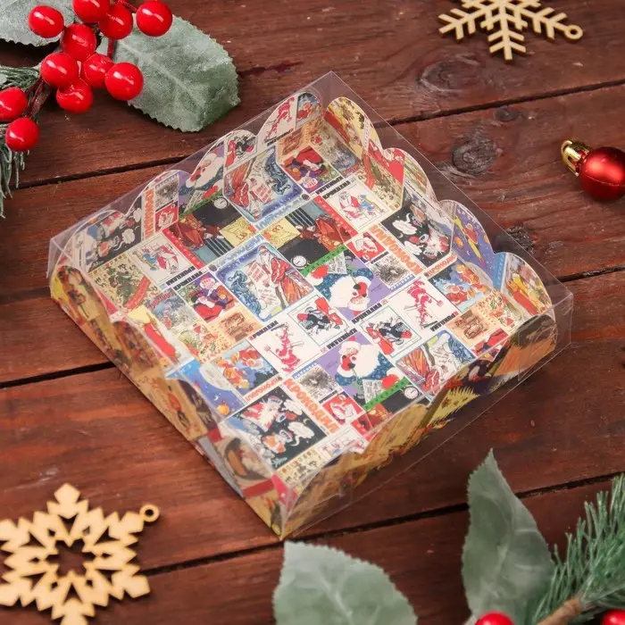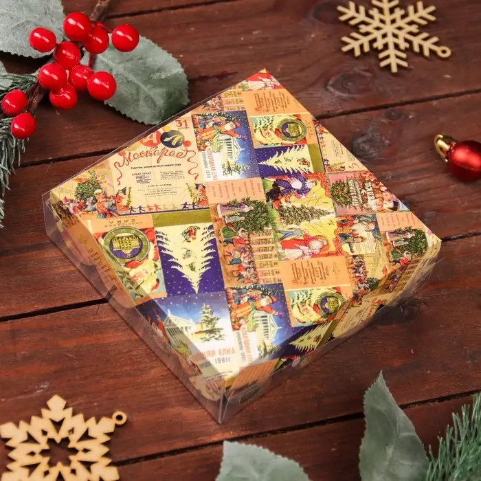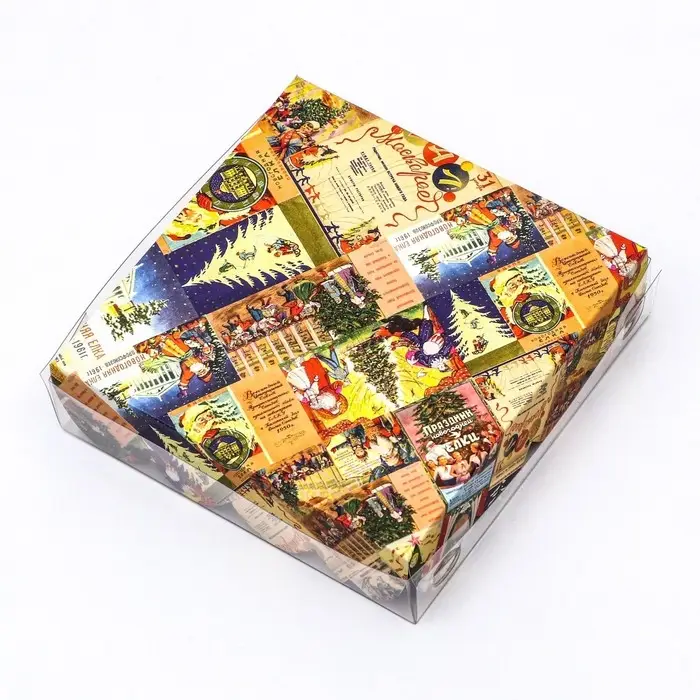 Коробка для печенья, кондитерская новогодняя упаковка, «Новогодняя афиша», 12×12×3 см