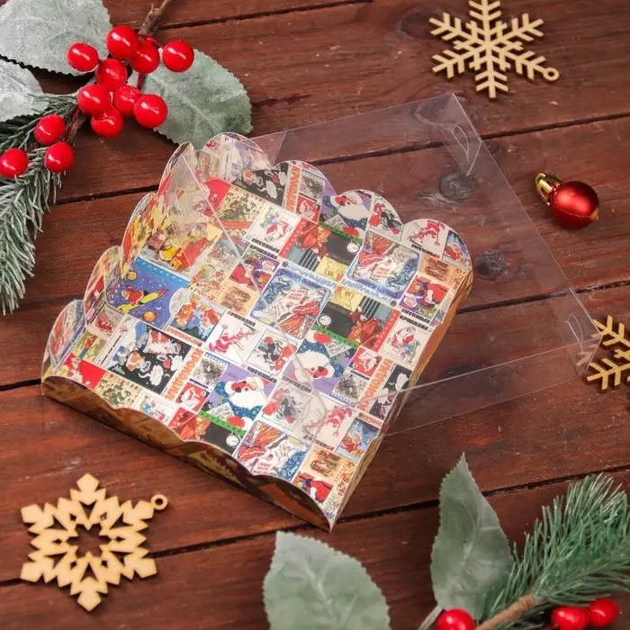 Праздничная подарочная коробка для печенья, выполненная в новогоднем стиле, является идеальным выбором для упаковки и презентации макарун и других десертов. Она представляет собой сочетание элегантности и функциональности, сочетая в себе привлекательный дизайн и надежную конструкцию.