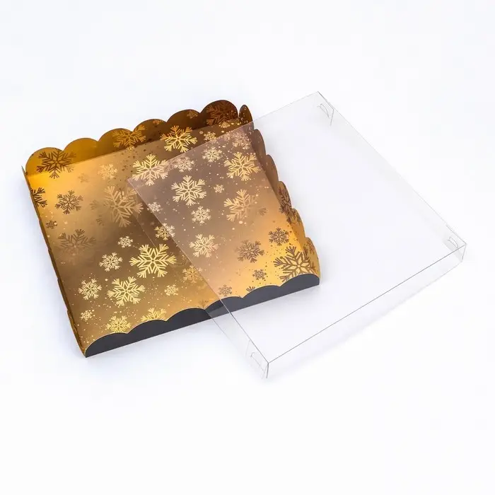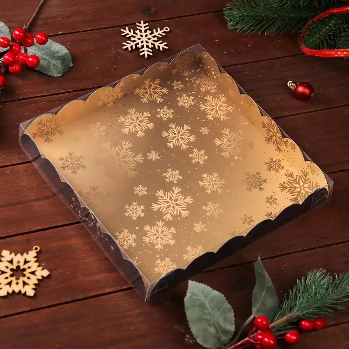 Коробка для печенья с прозрачной крышкой, можно видеть содержимое коробки. Прекрасно подойдет для десертов, можно использовать для праздничного декора.