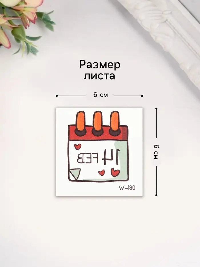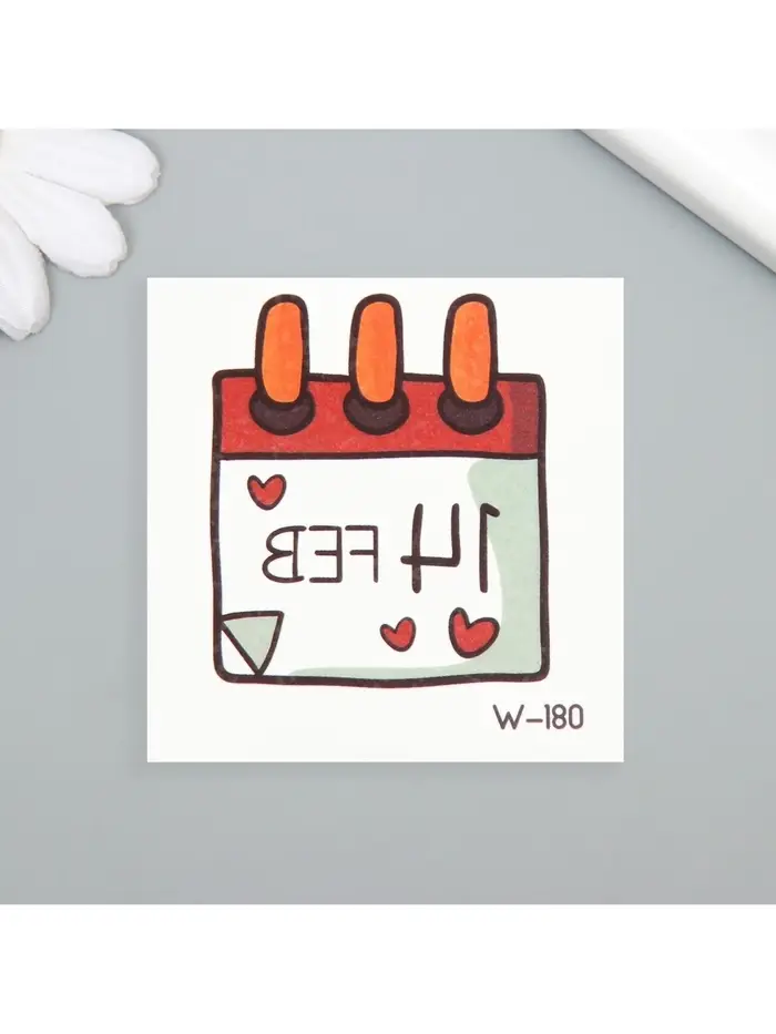 Переводная тату цветная «Календарь. День Влюблённых», временная татуировка, 6×6 см