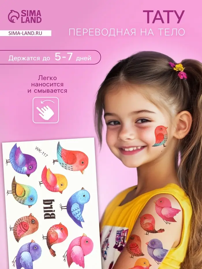 Переводные тату на тело цветные «Маленькие воробышки», 7.5×11 см